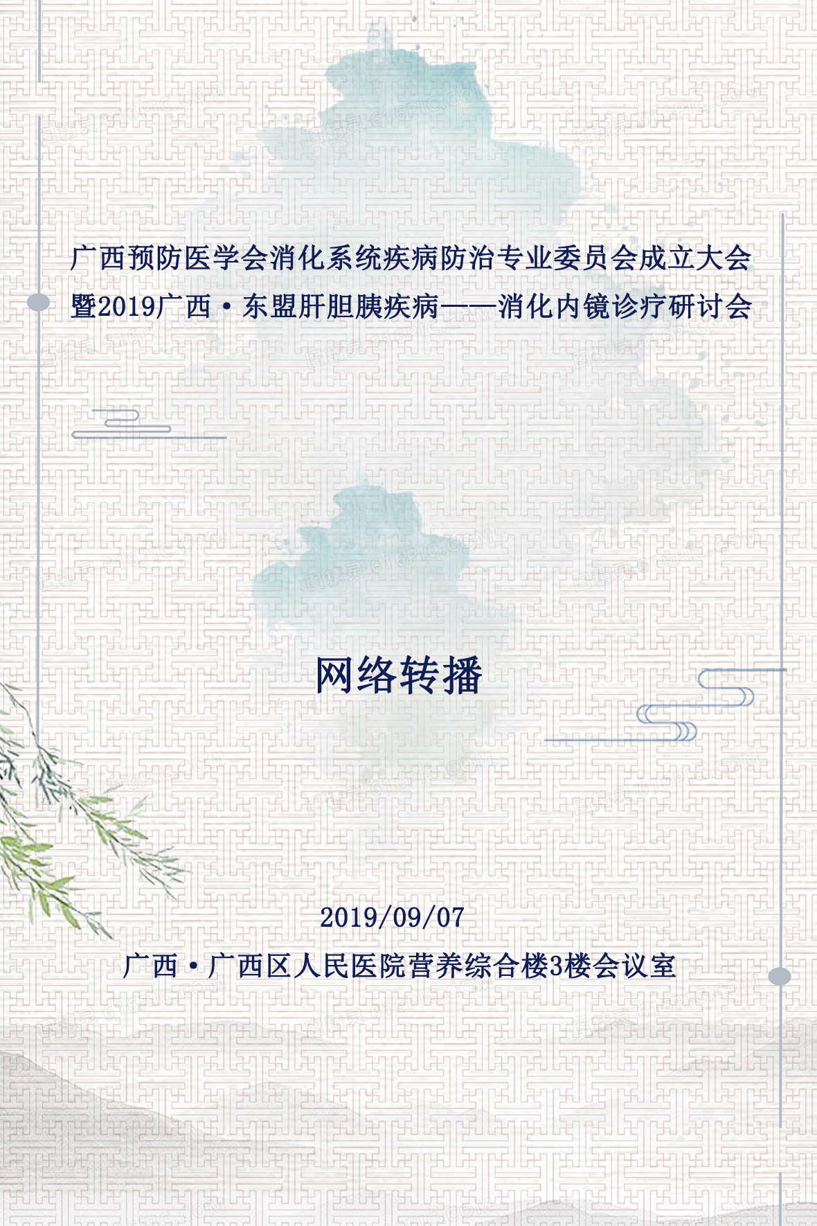 转播|广西预防医学会消化系统疾病防治专业委员会成立大会暨广西·东盟肝胆胰疾病——消化内镜诊疗研讨会于2019年09月07日在广西区人民医院营养综合楼3楼会议室内举行,本次会议由广州高通影像技术有限公司提供专业手术转播服务!敬请期待!_高通医疗直播为医疗行业网络视频直播、转播提供一站式解决方案。
