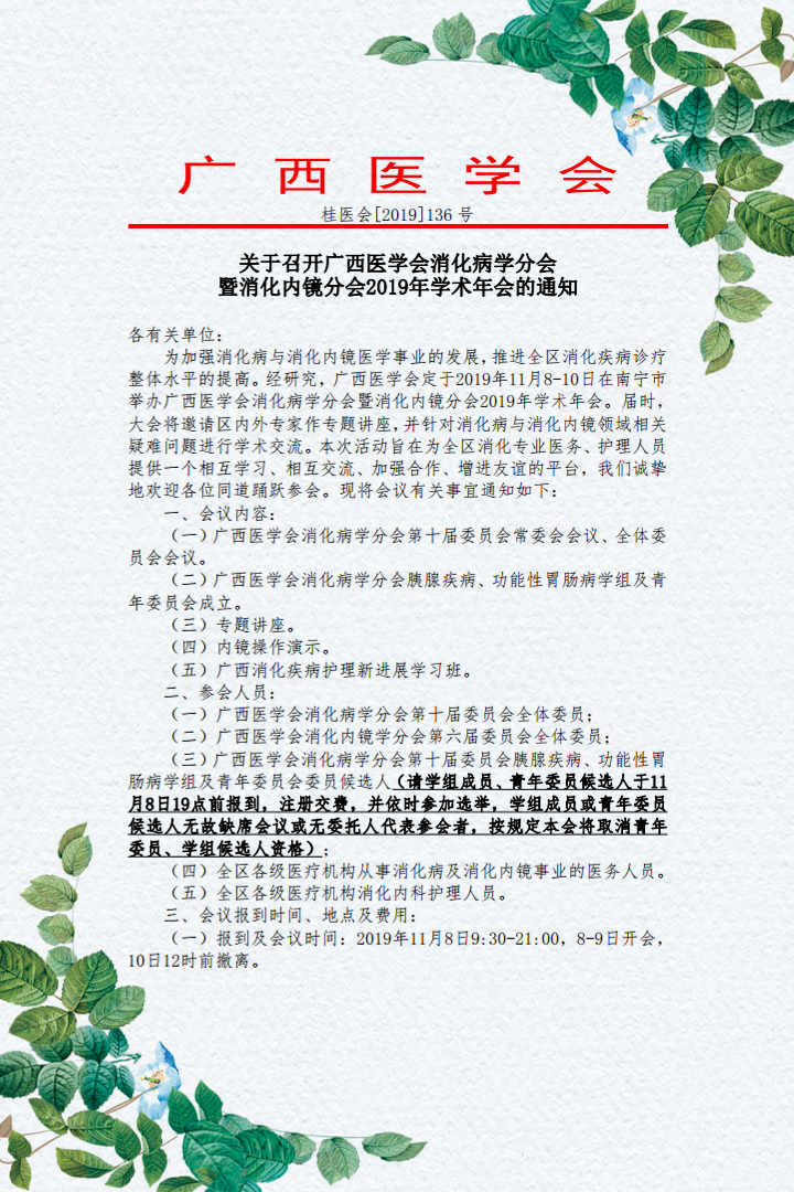 转播|广西医学会消化病学分会暨消化内镜分会2019年学术年会