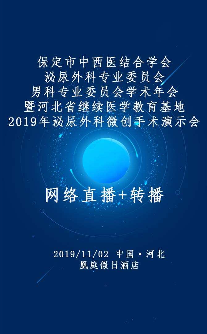 网络直播+转播|保定市中西医结合学会泌尿外科专业委员会、男科专业委员会学术年会暨河北省继续医学教育基地2019年泌尿外科微创手术演示会将于2019年11月02日在中国·河北凰庭假日酒店内举行,本次会议由广州高通影像技术有限公司提供专业手术转播及网络直播服务!敬请期待!
