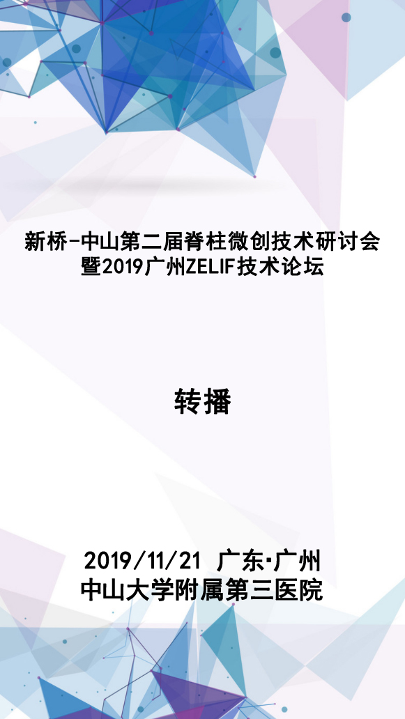 转播|新桥-中山第二届脊柱微创技术研讨会 暨2019广州ZELIF技术论坛于2019年11月21日在广东·广州中山大学附属第三医院召开,本次会议由广州高通影像技术有限公司提供专业手术转播服务!敬请期待!