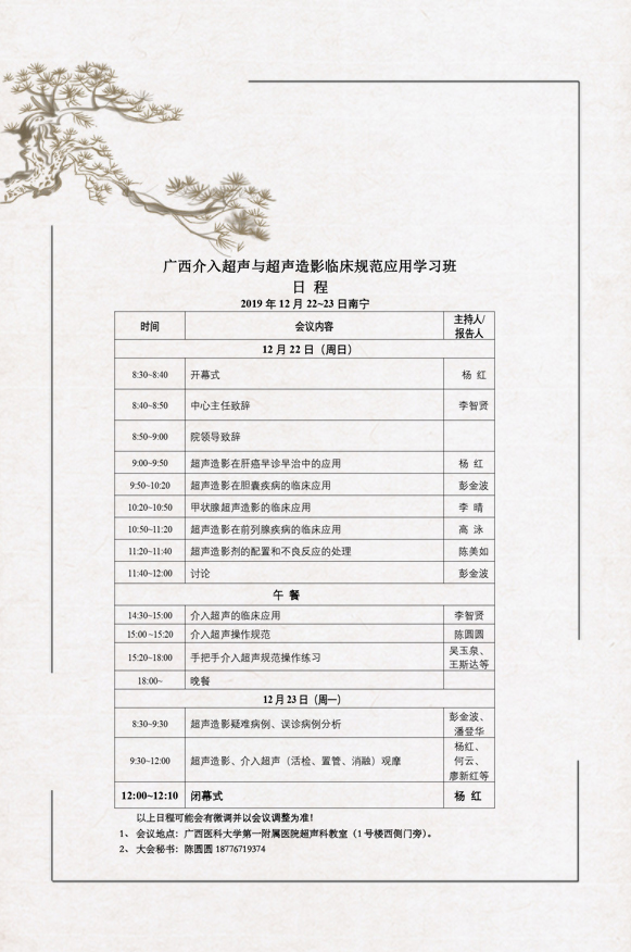 转播|2019年第一届介入超声 超声造影临床规范应用精品班于2019年12月22-23日在广西·广西医科大学第一附属医院召开,本次会议由广州高通影像技术有限公司提供专业手术转播服务!敬请期待!