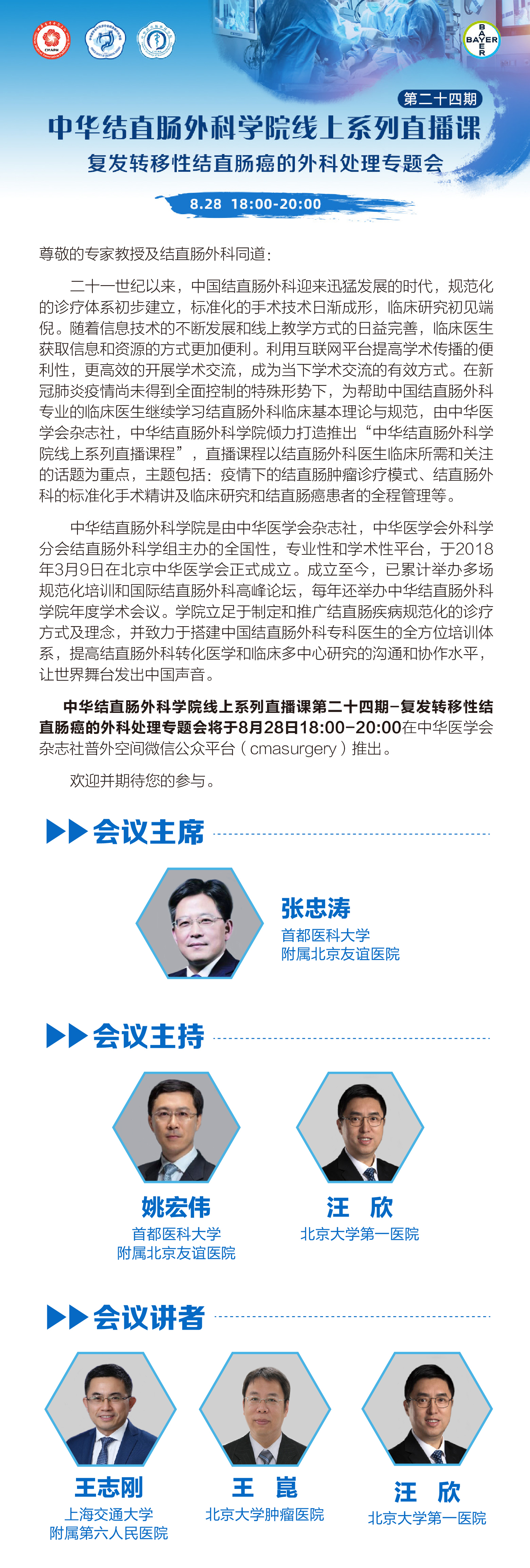 网络直播|第二十四期中华结直肠外科学院线上系列直播课 复发转移性结直肠癌的外科处理专题会