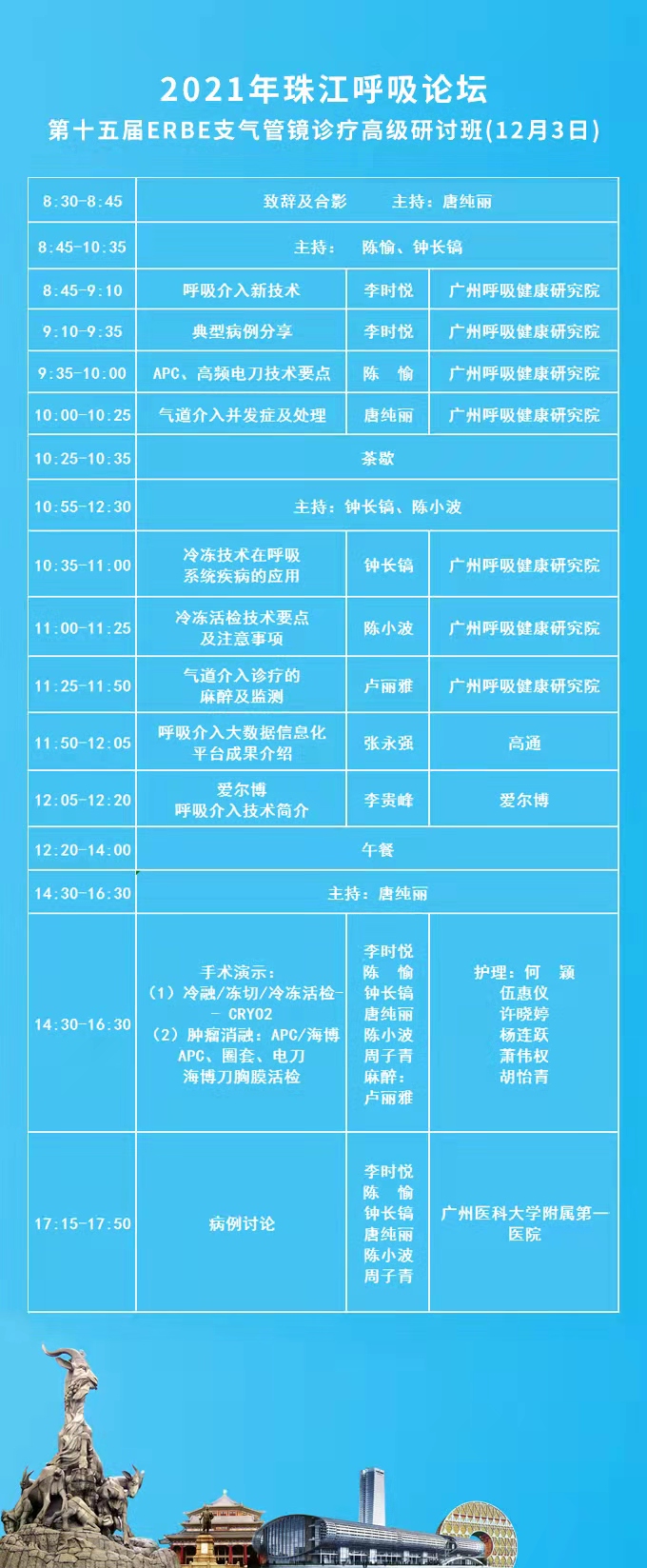 网络转播+直播|2021年珠江呼吸论坛 第十五届ERBE支气管镜诊疗高级研讨班