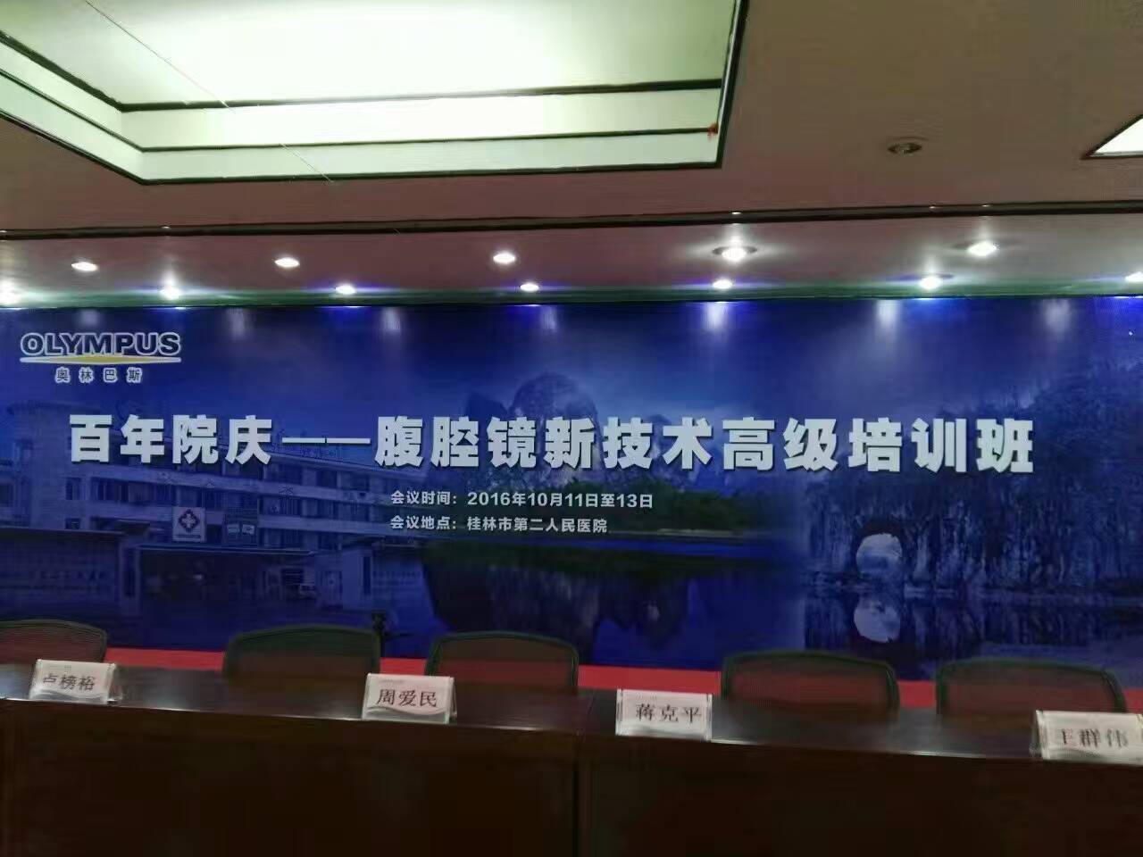 “桂林市腹腔镜技术应用新进展高级学习班”于2016.10.11~13在桂林市第二人民医院召开,本次会议由广州高通影像技术有限公司提供手术转播服务,会议圆满成功!