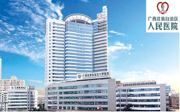 广西壮族自治区人民医院位于广西壮族自治区南宁市青秀区桃源路6号,始建于1941年,设有两个门诊部、一个分院,建筑面积22.45万平方米,占地面积64585.96平方米,是一所集医疗、科研、教学和预防保健为一体的三级综合医院。医院设有心血管内科、消化内科、肾内科、神经内科、呼吸内科、内分泌代谢科、血液内科,重症医学科、胃肠外周血管外科、肝胆腺体外科、泌尿外科、故可、心血管外科、神经外科、普外科、疼痛科、妇科、产科、儿科、眼科、中医科、中医骨伤科、康复科、检验科、放射科、超声科等临床和医技科室。其中消化内科、眼科、中医骨伤科、临床护理为国家临床重点专科,儿科、肾内科、急诊科、重症医学科、神经内科、神经外科为自治区临床重点专科,心脏血管病科和消化内科为自治区重点学科和广西脑卒中中心、眼科、广西微创手术中心、骨科为自治区重点建设学科。医院(含分院)开放病床1881张,配有医用直线加速器、瑞典全数字影像导航放射治疗系统、飞利浦128排多层螺旋CT、西门子3.0T核磁共振、GE和飞利浦血管造影系统等医疗设备。
